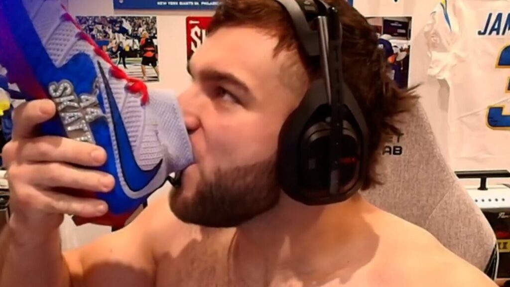 Giants RB Cam Skattebo drinking energy drink from his cleat. Seriously.